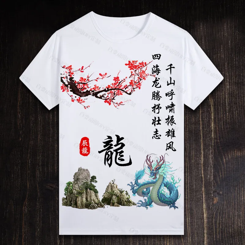 🔥 Áo thun nam phong cách Trung Quốc, in hình rồng và sư tử 3D, tay ngắn – Thời trang streetwear, quà tặng sinh Nhật đang giảm giá!