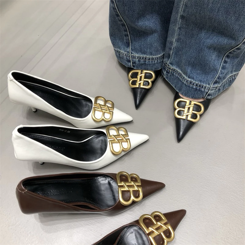 Những tính năng vượt trội của đôi giày cao gót logo BB vàng mũi nhọn